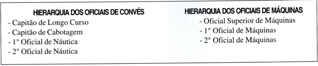 Fonte: LYRA, Márcio de Faria Neves Pereira de. Tradições do Mar: usos, costumes e linguagem. 7.ed., rev. e aum.- Brasília : Serviço de Relações Públicas da Marinha, 1999; e https://www.marinha.mil.br/tradicoes-navais/gente-de-bordo.